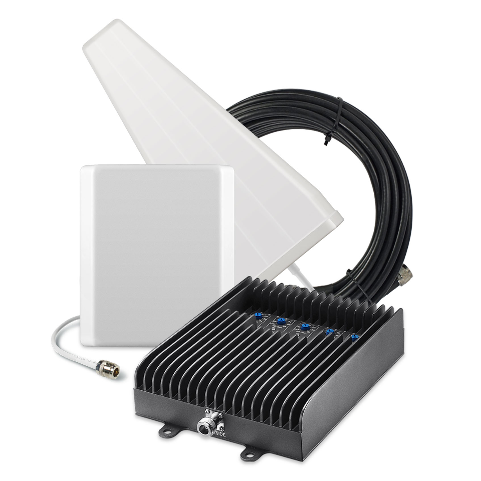 KIT Amplificador Flex-Pro SureCall, cubre 2 y 3G, H y H+. Bandas 5 y 2. Incluye: Amplificador de 65dB ganancia, Antena interna panel 7 dBI. Cable Coaxial SC-400 de 9.14mts, Antena Yagi exterior 10dBi. Coaxial SC-400 de 22.86mts y Fuente 220V. AC. 5 a 12V DC. Cubre 350 m2 (Un solo ambiente)